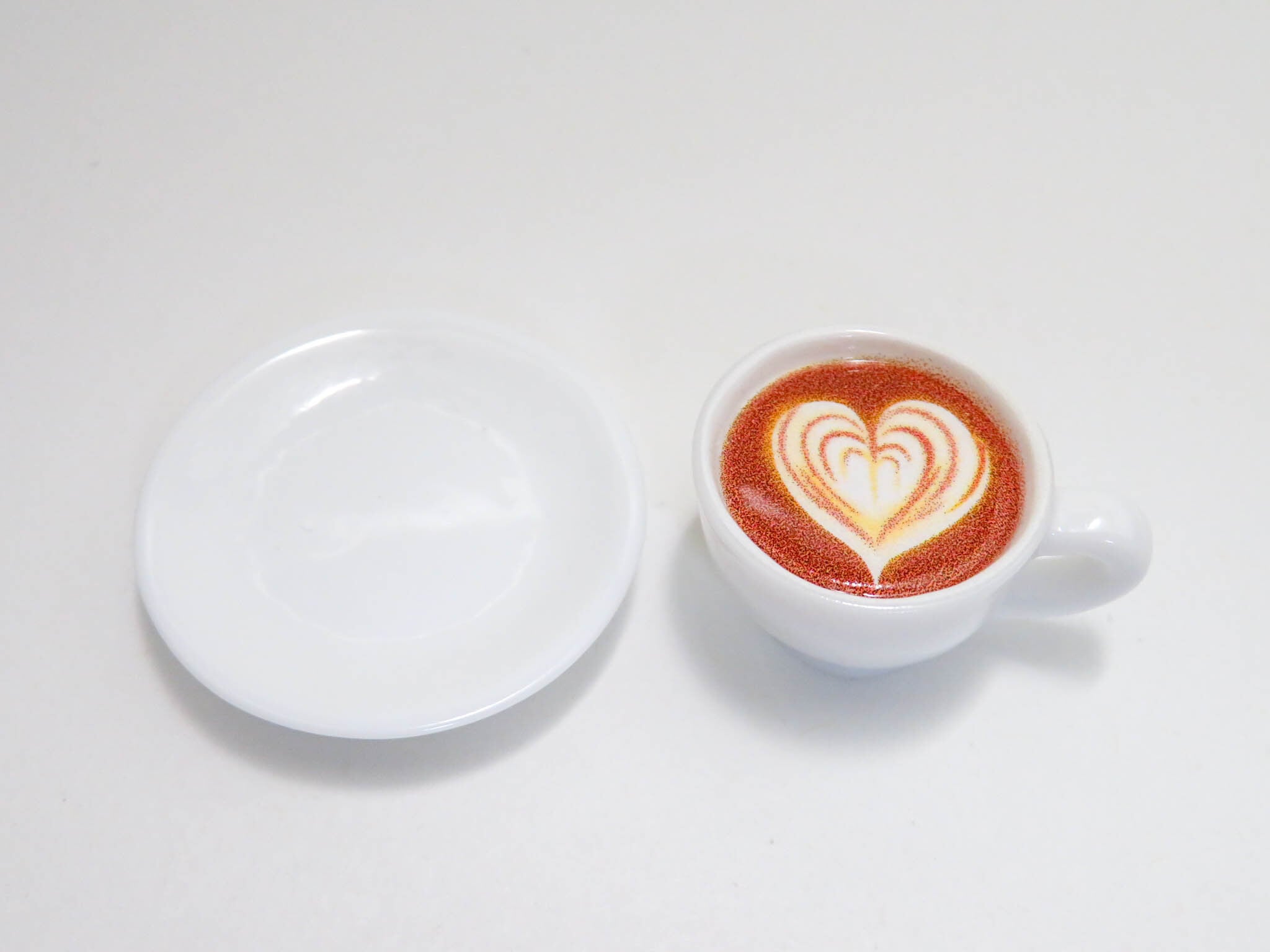 ミニチュアサイズのラテアートとお皿です。