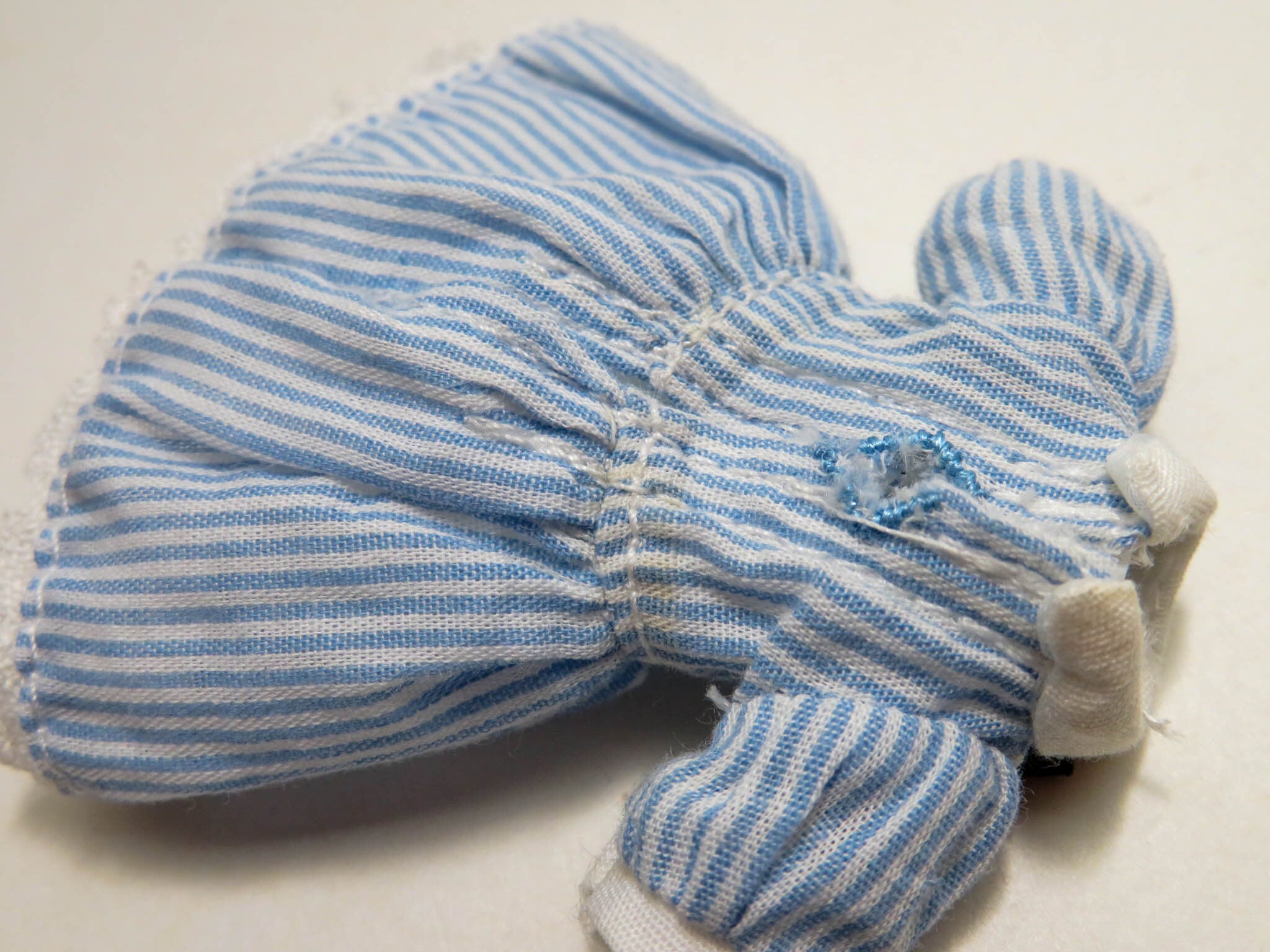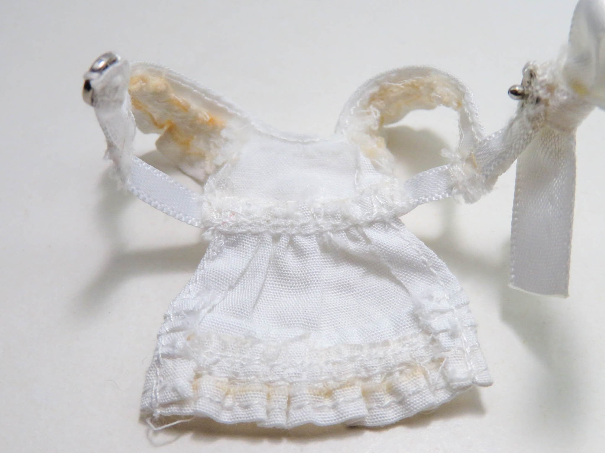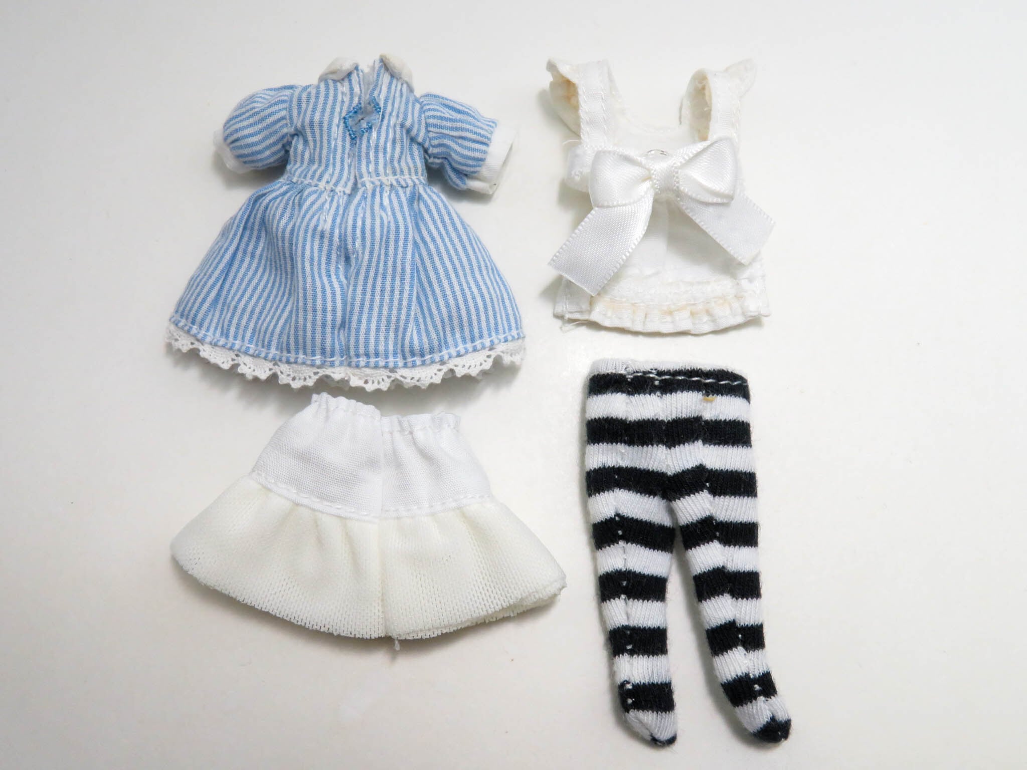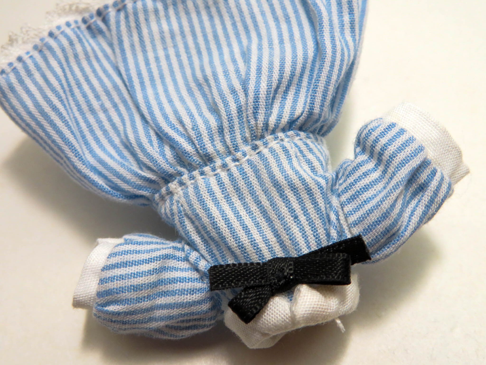 ・その他:布製品です。背面に台座用の穴あり。ストライプワンピースの背面はマジックテープになっております。エプロンの背面はスナップボタンで固定します。